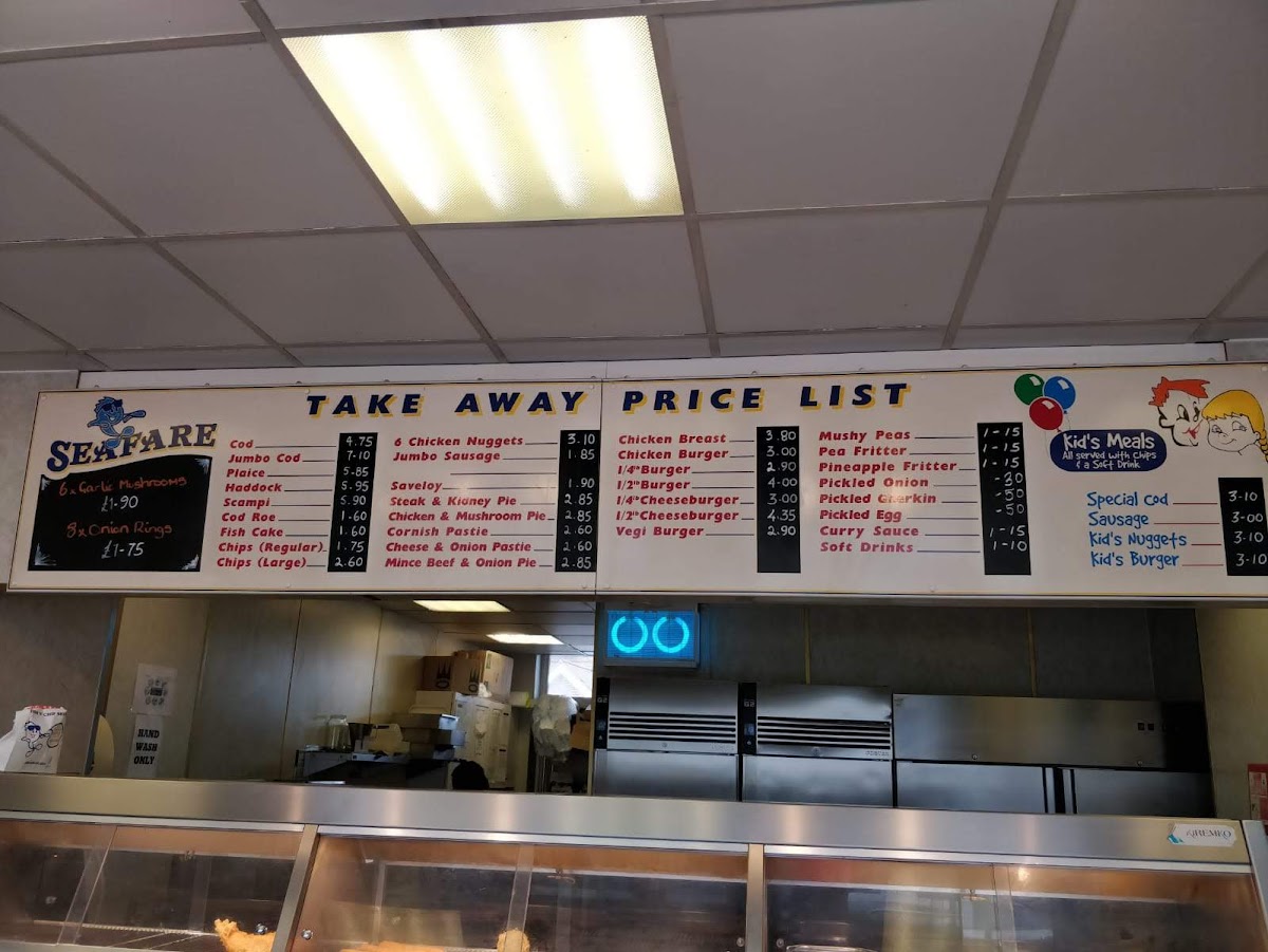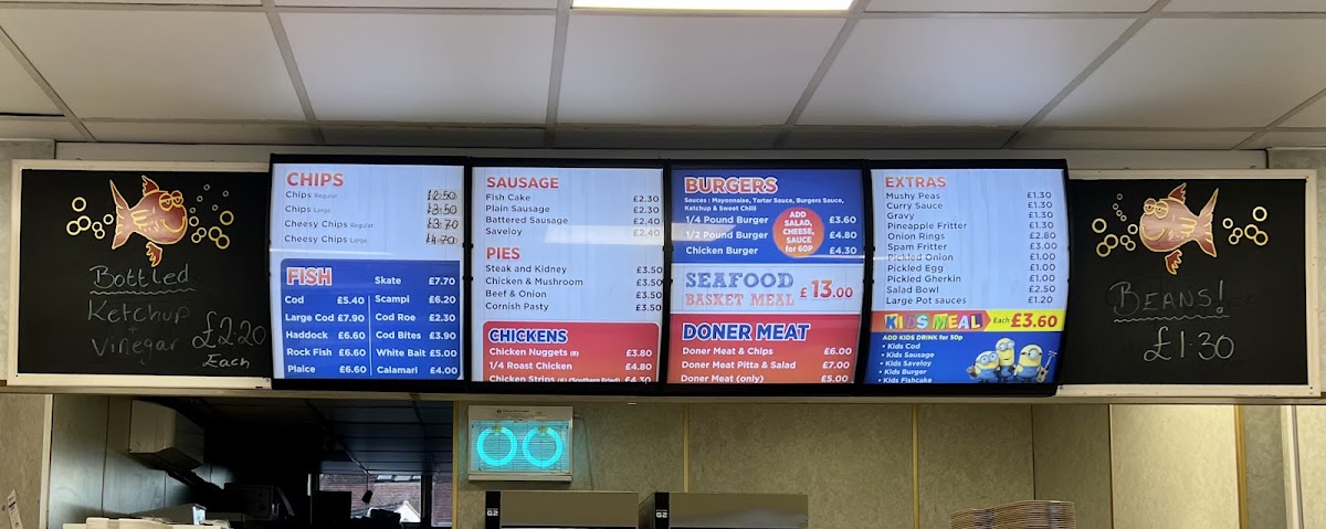 The menu at Aldershot Seafare Fish & Chips offers a wide variety of traditional and satisfying options. For those craving classic fish, choices include Cod, Skate, Scampi, and Large Cod, with Cod Roe also available for a different twist. If you're in the mood for something other than fish, the sausage options such as Fish Cake, Plain Sausage, and Battered Sausage are great alternatives, along with the savory Saveloy. Pies like Steak and Kidney, Chicken & Mushroom, and Beef & Onion provide a hearty addition, while the Cornish Pasty offers a comforting option for pastry lovers. Chicken lovers will enjoy the Chicken Nuggets, 1/4 Roast Chicken, and Chicken Strips. For a quick and satisfying meal, the 1/4 Pound Burger, 1/2 Pound Burger, and Chicken Burger are all tasty choices. The Doner Meat & Chips, Doner Meat Pitta & Salad, and simple Doner Meat cater to those after a flavorful, filling option. There are plenty of extras too, including Mushy Peas, Curry Sauce, Gravy, Pineapple Fritter, and Onion Rings. Families will appreciate the Kid's Meals, with options like Special Cod, Sausage, Kid's Nuggets, Kid's Burger, and Kids Fishcake. The sides include Chips, Cheesy Chips, and the classic Kids Cod. No matter your preference, Aldershot Seafare offers a generous range of affordable meals, ensuring there's something for everyone.